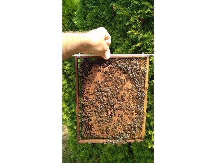 Včelí oddělek v sezoně roku 2025 obsedávající 4 rámky RM 30x43,5 (tři rámky s plodem, jeden zásobní rámek). Odběr bude možný v červnu 2025.